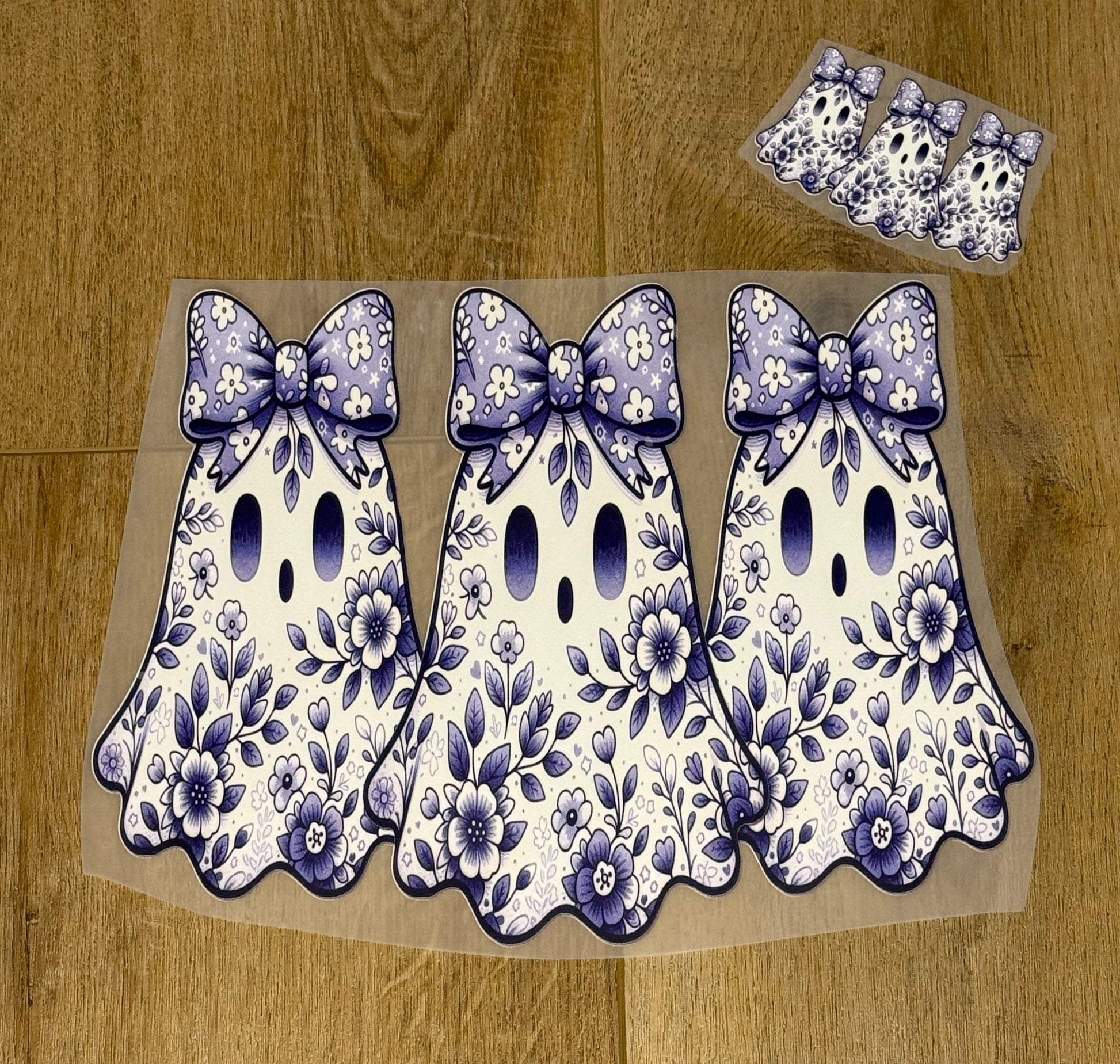 Blue & White Floral Ghosts with Pocket| Adult Tee